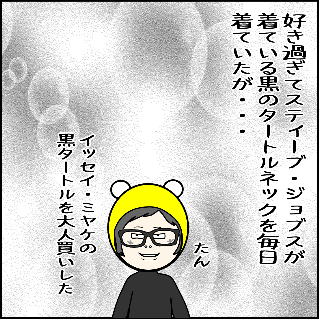 意識高い女はスティーブ・ジョブスに憧れる 2021年08月29日 17:15 意識高い人は皆大好きなあの人。 スティーブ・ジョブス スティーブ・ジョブスはイッセイ・ミヤケの黒タートルのイメージですよね。 そして芸人のナダルもタートル着てるイメージが強い。 と言うことは、2大タートルネックの有名人。 コミックエッセイ絵日記ブログを別ブログでやってます。↓下のバナー画像リンクから飛べます カテゴリなしの他の記事 < 前の記事次の記事 > コメント コメントフォーム 名前 コメント 記事の評価 リセット リセット 顔 星 情報を記憶 コメントを投稿する